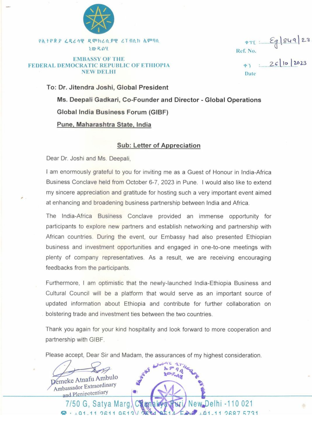 Embassy of The Federal Democratic Republic of Ethiopia in India