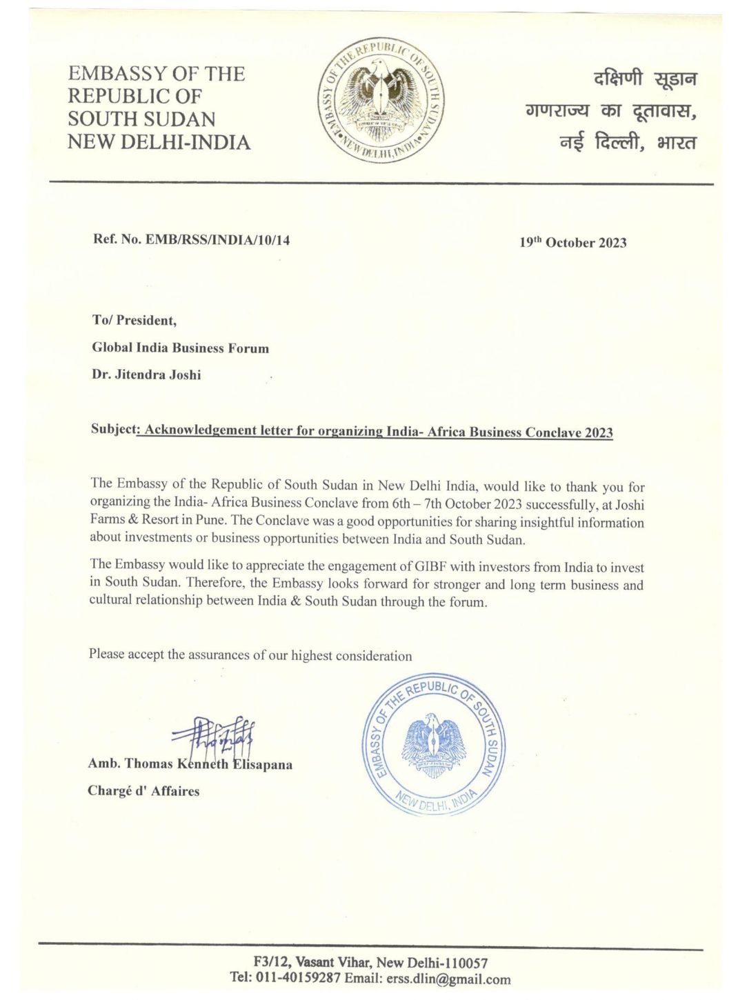 Embassy of The Republic of South Sudan in India