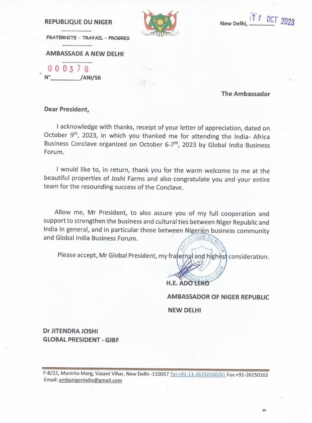 Embassy of Republic of Niger in India