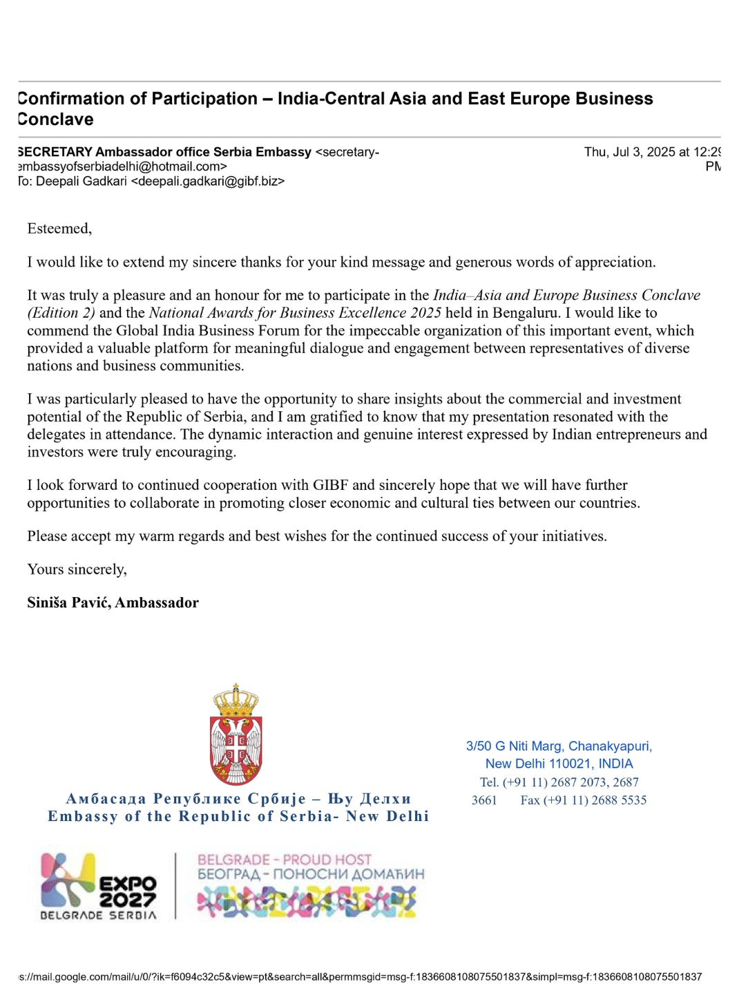 Embassy of the Republic of Serbia in India