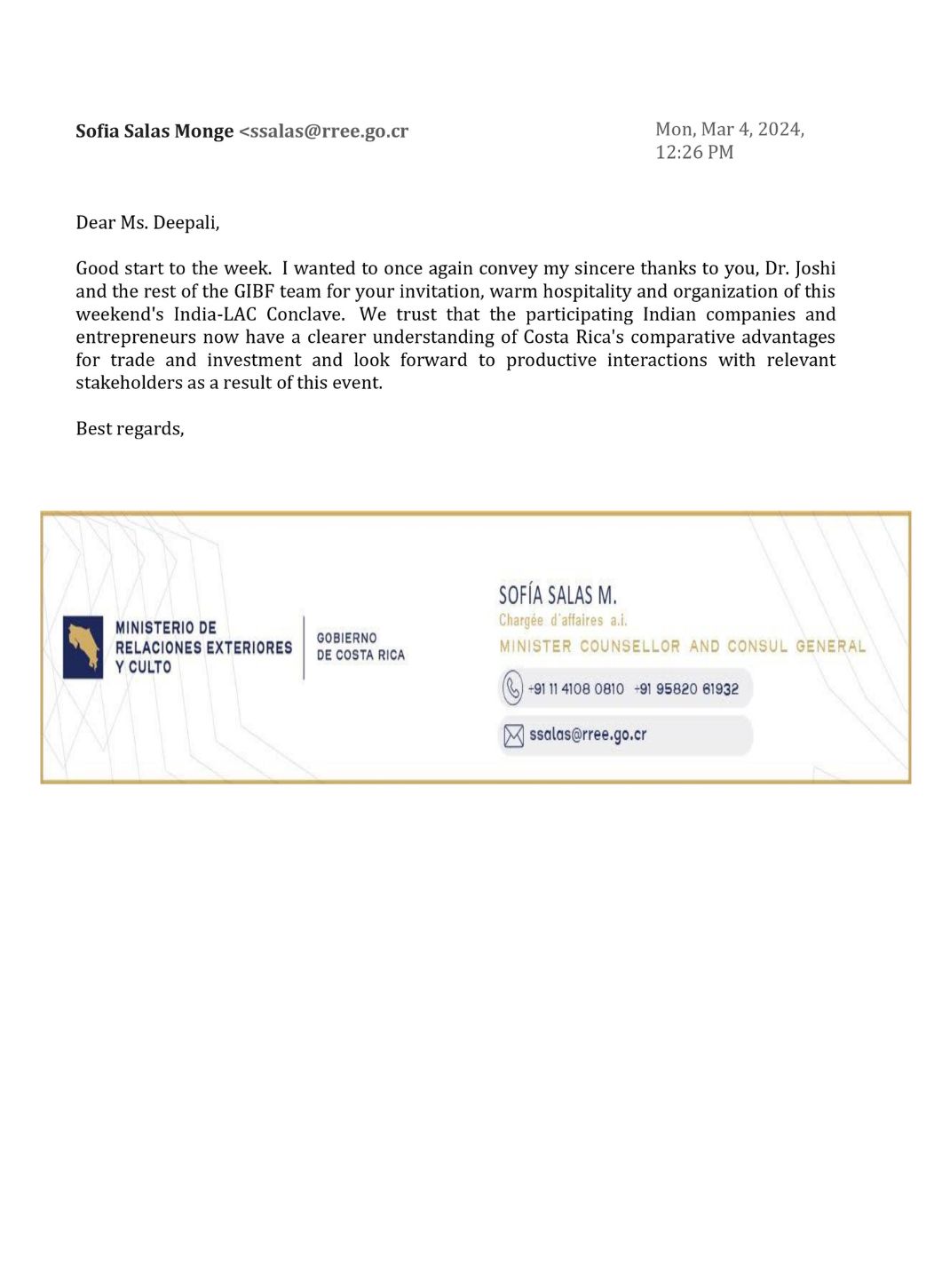 Embassy of Costa Rica in India
