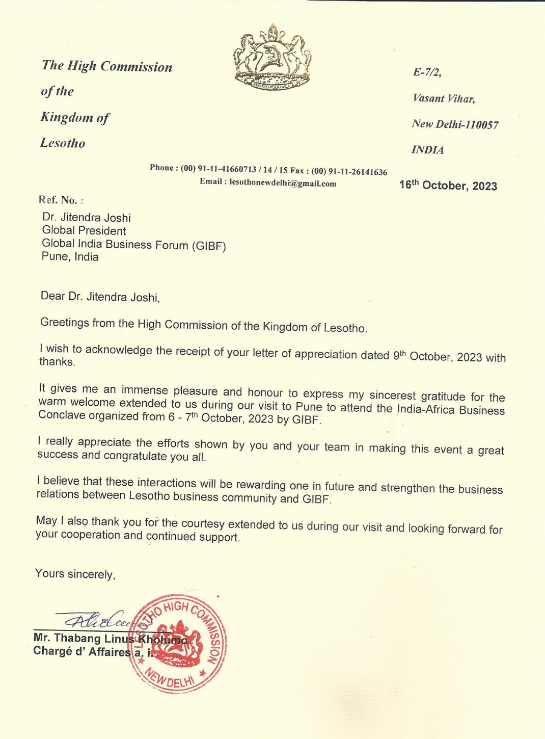 High Commission Of The Kingdom Of Lesotho in India